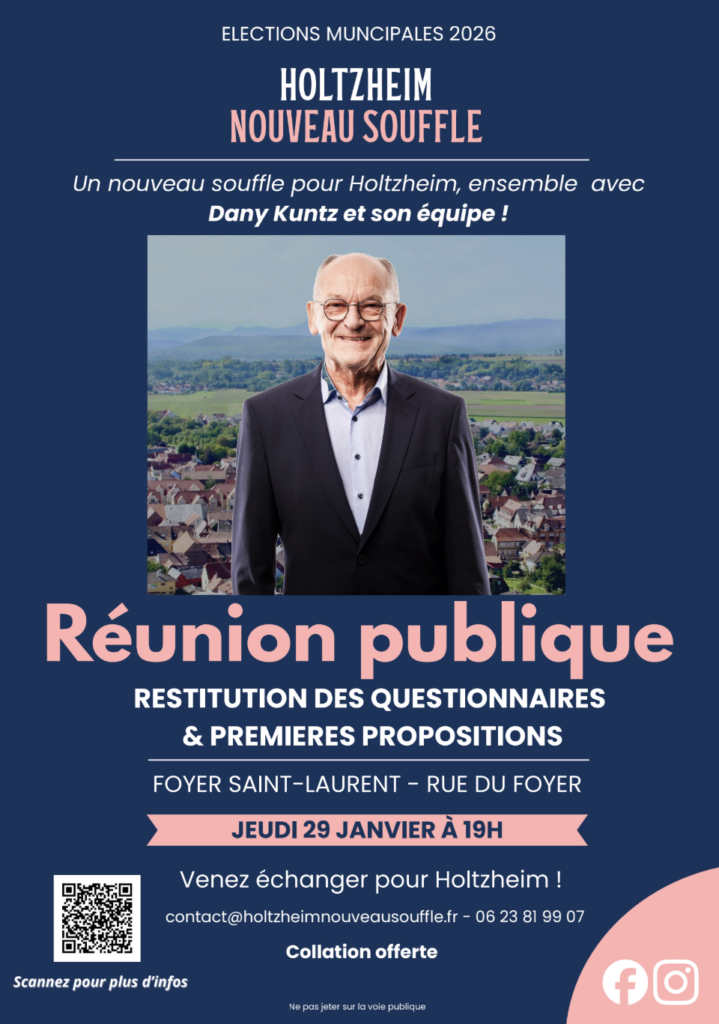 Chères Holtzheimoises, chers Holtzheimois, En ce début d’année, toute l’équipe Holtzheim Un Nouveau Souffle vous adresse ses meilleurs vœux de santé, de sérénité et de confiance dans l’avenir de notre...